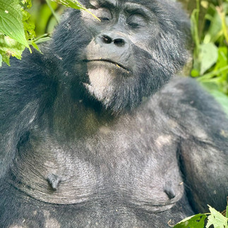 Zážitek na celý život, když se z hustého porostu zvedne vůdčí samec, pozorně si mě prohlédne – jsem pár metrů od něj – a namíří si to přímo ke mně. Mám zaděláno v kalhotách a málem pouštím mobil, kterým fotím z ruky. Cítím velký respekt a strach zároveň. Všechno se odehrálo rychle a dobře dopadlo. Hlavně nepanikařit. Na místní stopaře, kteří se v jejich blízkosti pohybují celý den a znají velice dobře jejich chování a zvyklosti, je spoleh. Kdyby gorily začaly být jakkoli nervózní, okamžitě by všechny návštěvníky upozornili a odvedli do bezpečí. Žádné mříže, žádné sklo jako v pražské zoo, žádné zábrany, jen skupina devíti překrásných goril, která po svolení vůdčího samce (jemuž je 45 let a váží úctyhodných 250 kg) zkracuje naši vzájemnou vzdálenost. Všechny gorily se chovají naprosto přirozeně. Pokud neuděláte nic zbrklého, co by je vyděsilo, nemusíte se jich bát. Přesně po hodině průvodci zavelí a vydáváme se ve vlastních stopách z džungle zpátky do „civilizace“. Byl to mimořádně dlouhý a náročný den, na který budu po zbytek života vzpomínat.
